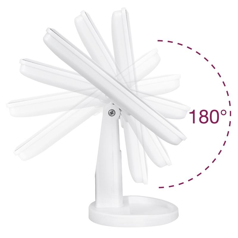Le miroir de maquillage flexible avec lumière peut pivoter à 180 degrés, ce qui vous permet d'ajuster le meilleur angle de vue pour le maquillage, que vous soyez debout ou assis. La base de rangement peut stocker de petits articles cosmétiques et garder la table propre.