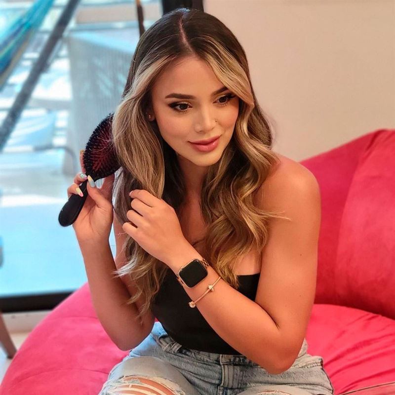 Le produit est fabriqué à partir d'une combinaison de poils de sanglier et de nylon, garantissant une finition soyeuse et brillante. Une brosse qui masse et stimule le cuir chevelu, libérant les huiles naturelles du cuir chevelu.
