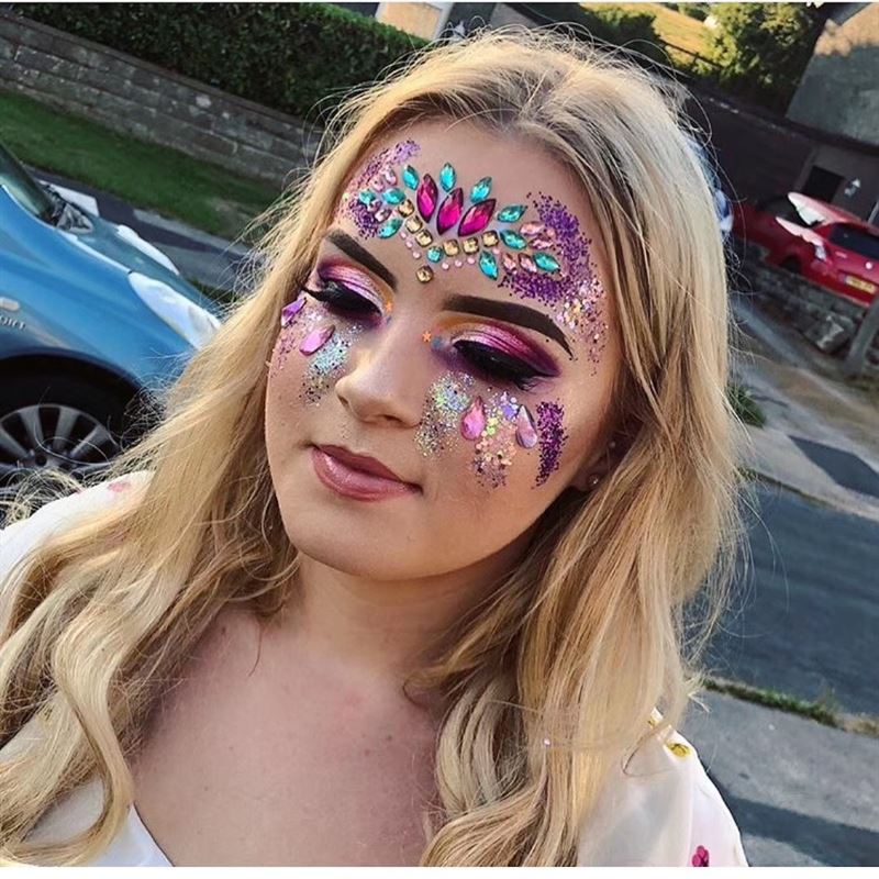Bijoux autocollants aux couleurs argent, rose, rose, violet et arc-en-ciel chromatique. Le lot contient 58 pierres. Les bijoux de visage en strass/pierres précieuses sont l'accessoire parfait pour toute fête ou soirée costumée ! Ces magnifiques cristaux autocollants peuvent également être utilisés sur le corps pour ajouter un éclat et un glamour supplémentaires à votre tenue de fête.